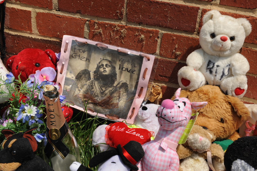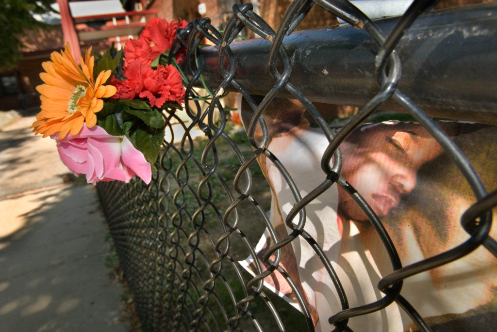 A memorial shrine for Zion Destiny Walker, who was beaten to death at age 2 by her mother’s boyfriend in 2008. Photo by Lloyd Wolf.