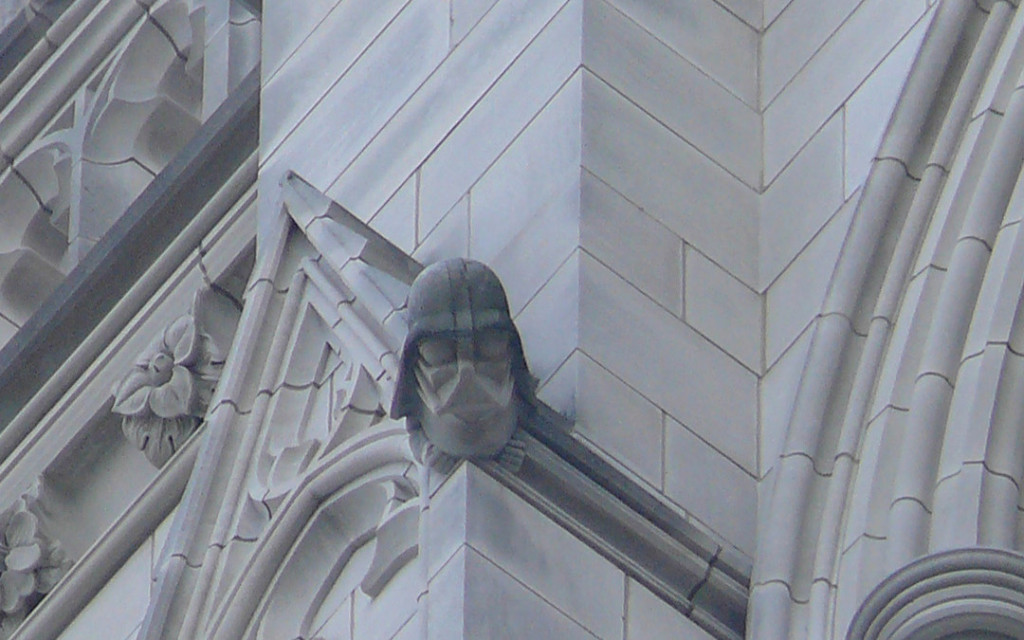 The Darth Vader grotesque on the northwest tower of the Washington National Cathedral. Photo by Cyraxote.